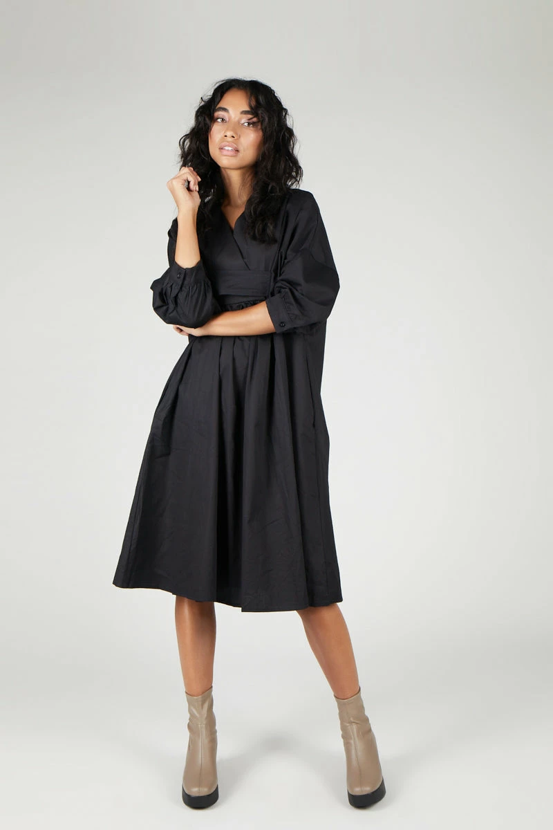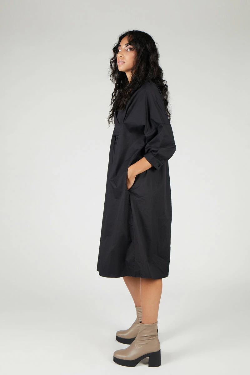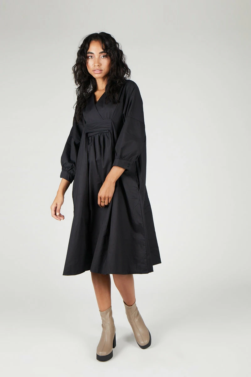 The Perfect Minimal dress, with a deep V and Obi inspired belt at the midsection for styling and fit.