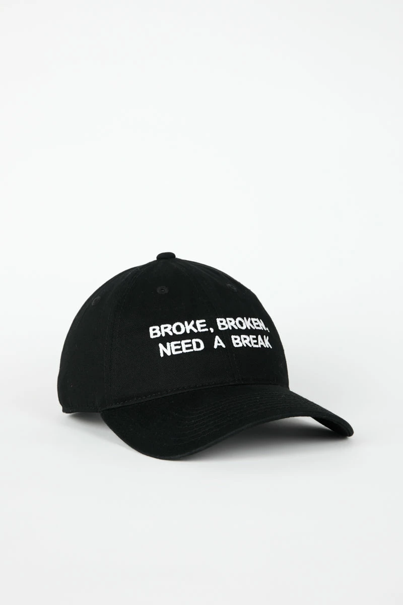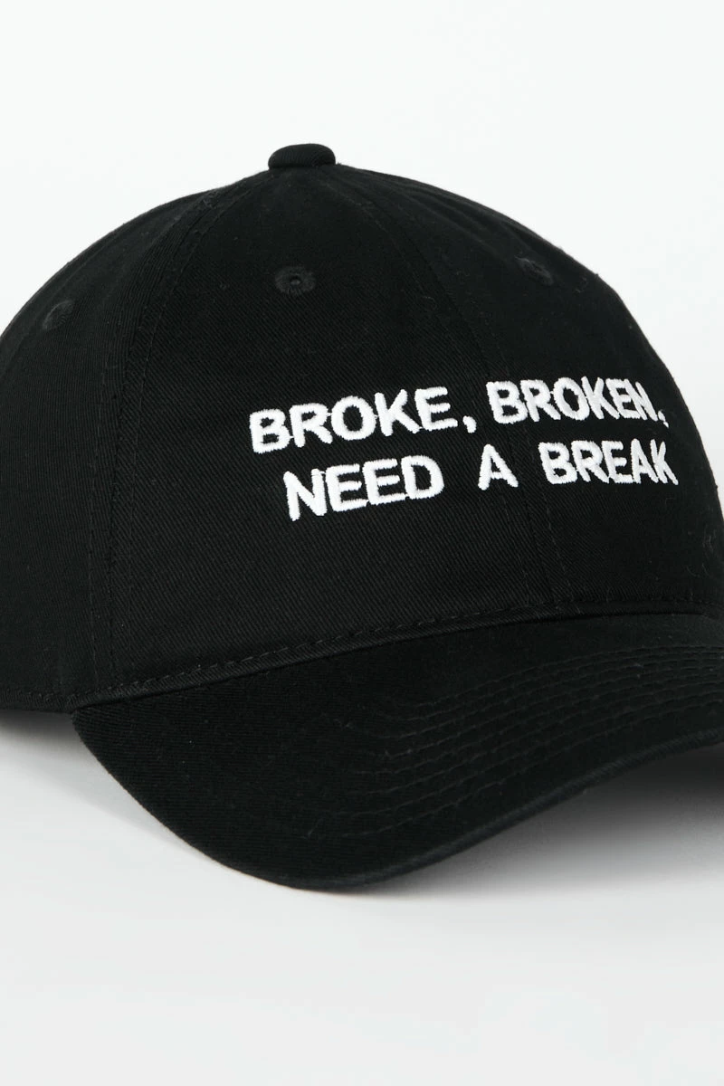 Intentionally Blank BROKE, BROKEN, NEED A BREAK Dad Cap Black White
