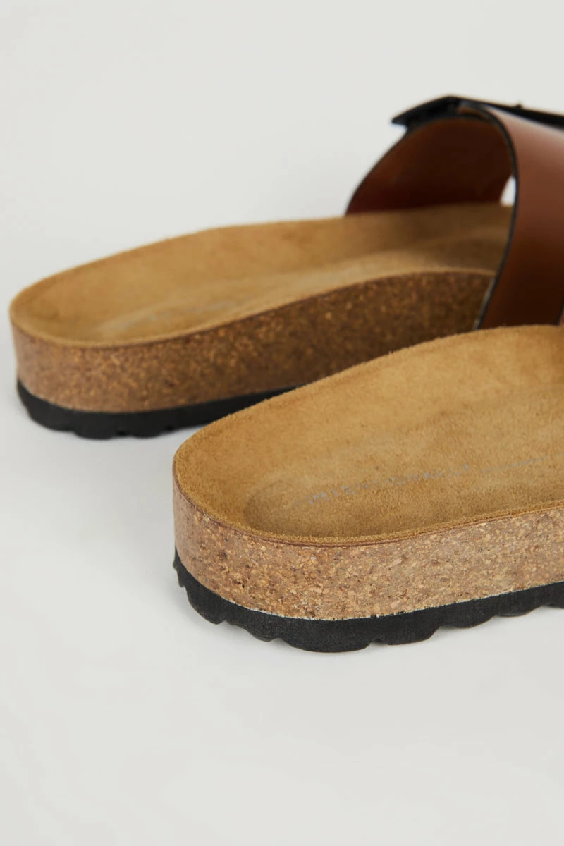 Keep it minimal with this summer slide. Made in Spain, this simple bio footbed slide is made fresh with a nod-to-mod with the detail of this oversized buckle. Slip on and go forward with style without compromising comfort.