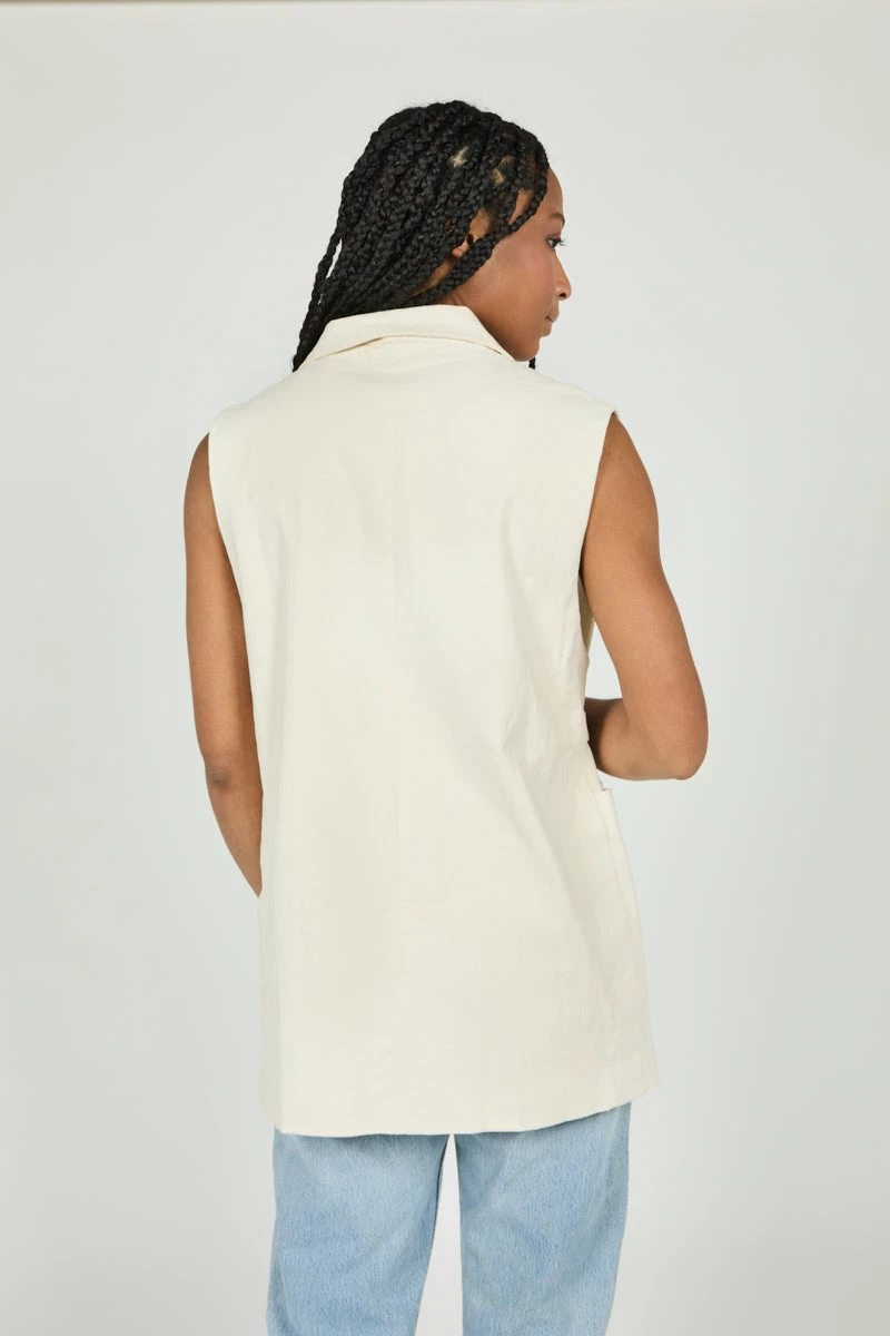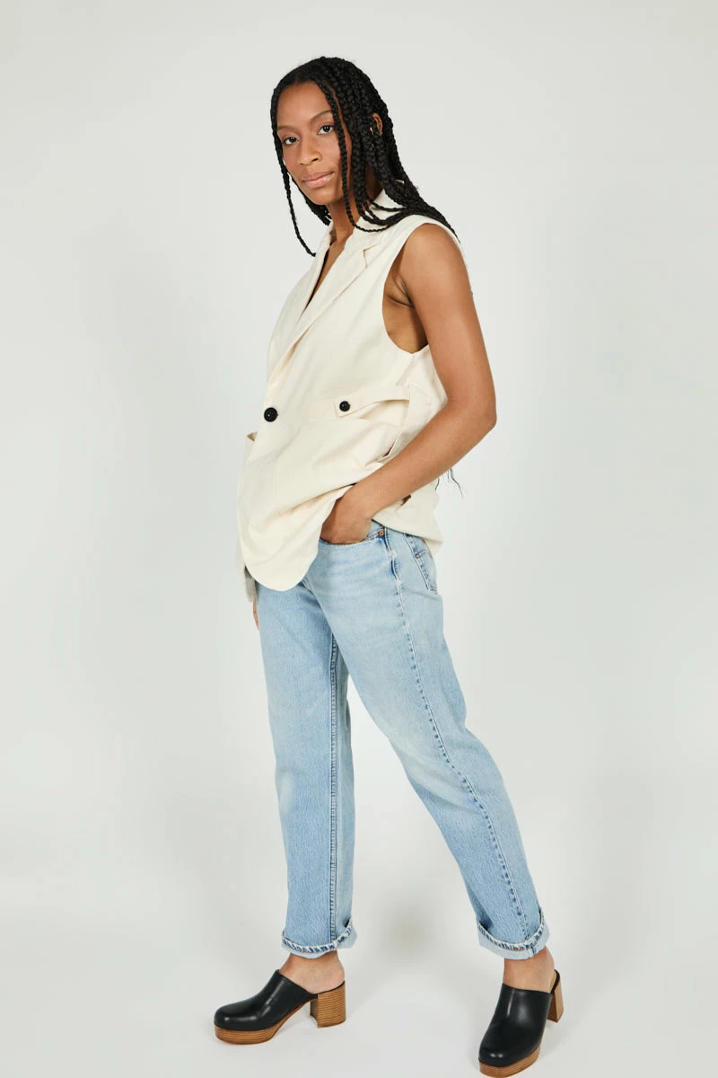 Menswear inspired layering vest that is perfect for seasonless styling. Oversized and relaxed, classic and refined.