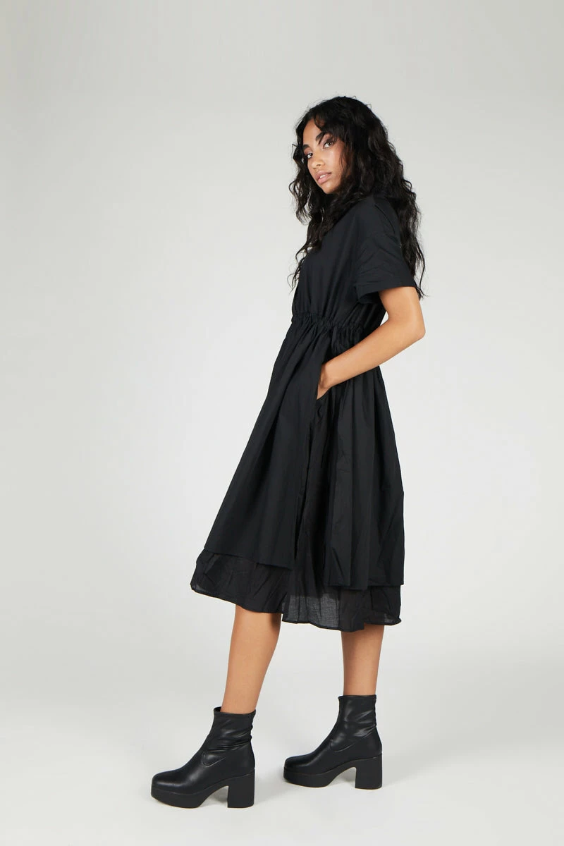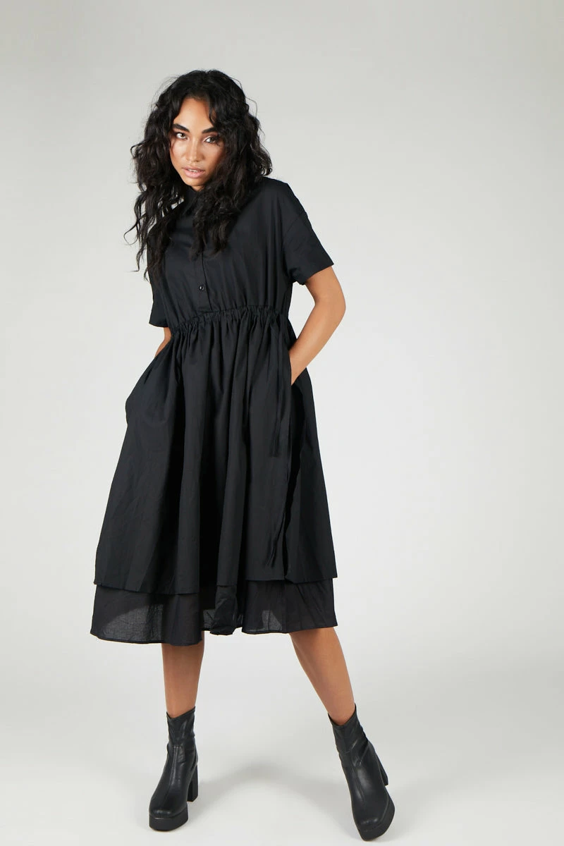 We love the EVE babydoll with menswear details on top and pleated attached skirt for volume and movement.