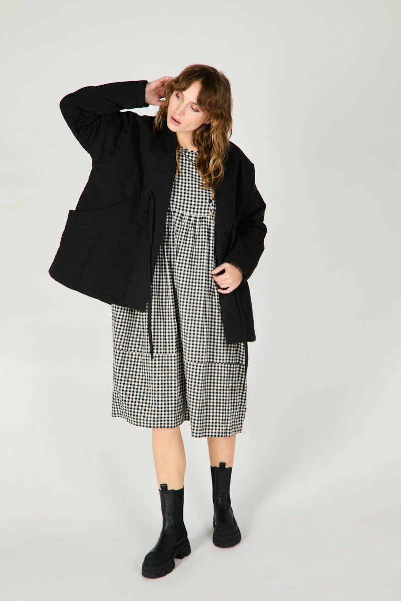 Our EFX cropped kimono style coat is perfect for bundling up weather. The crop is just right for easy styling without the fuss.