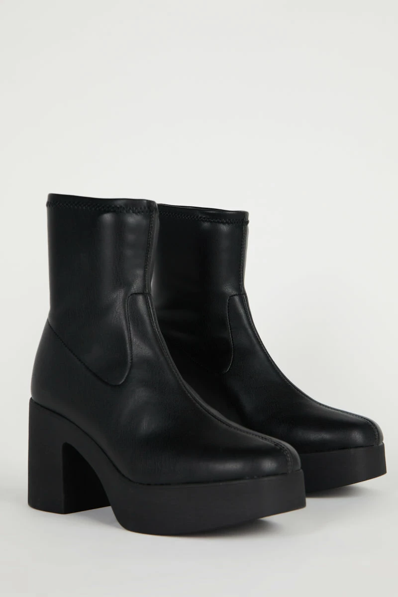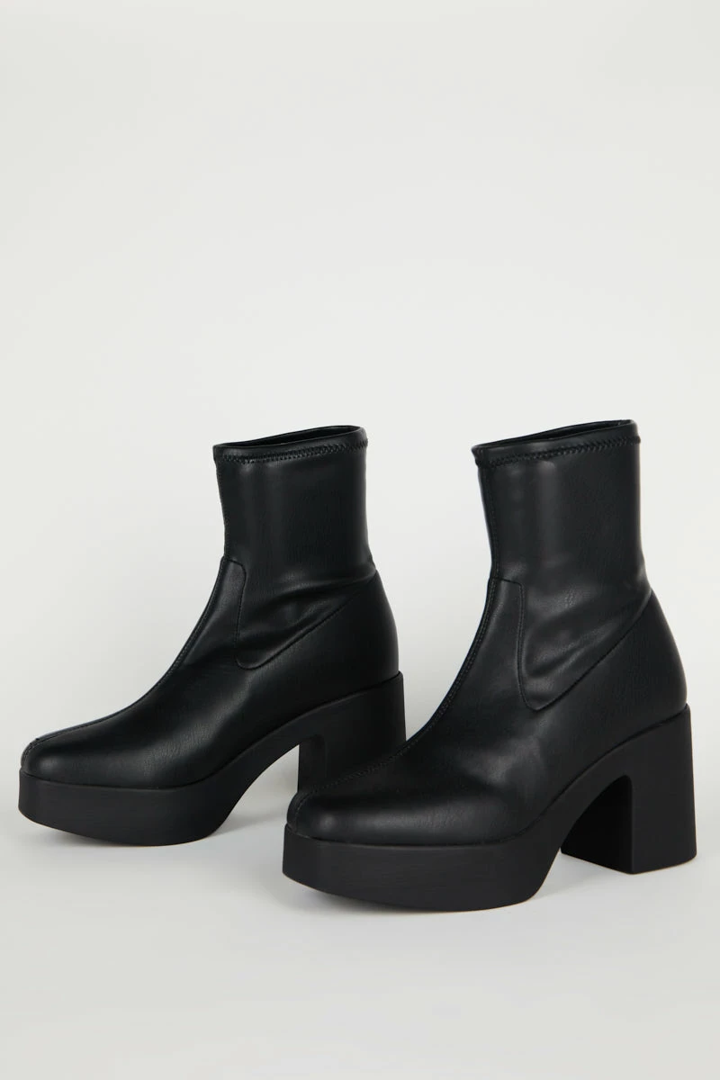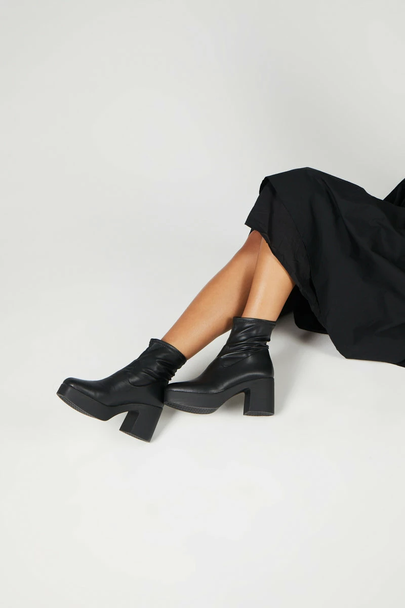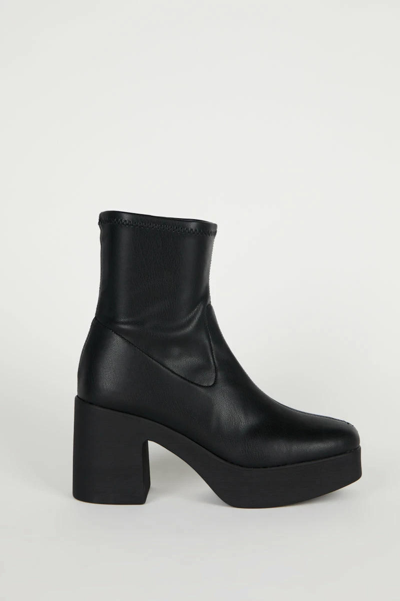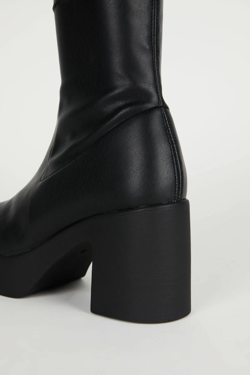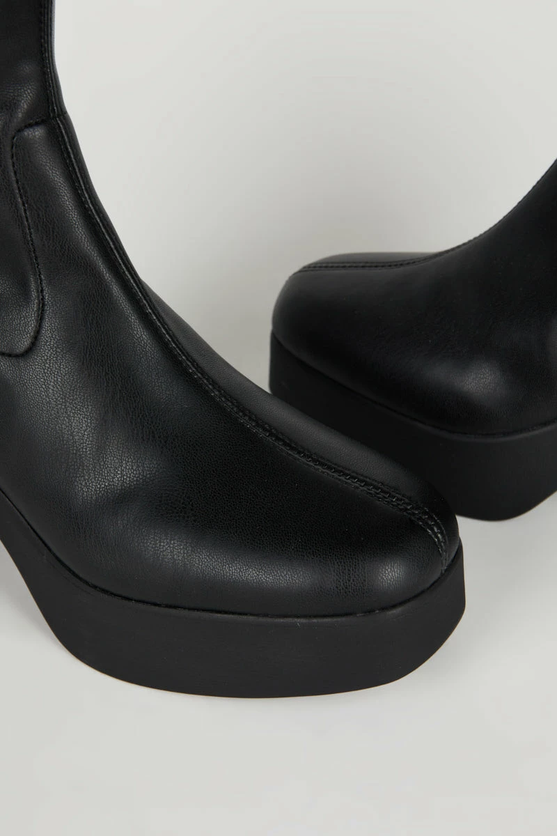 100% Vegan and perfect for styling, this stretch platform boot is the perfect staple.