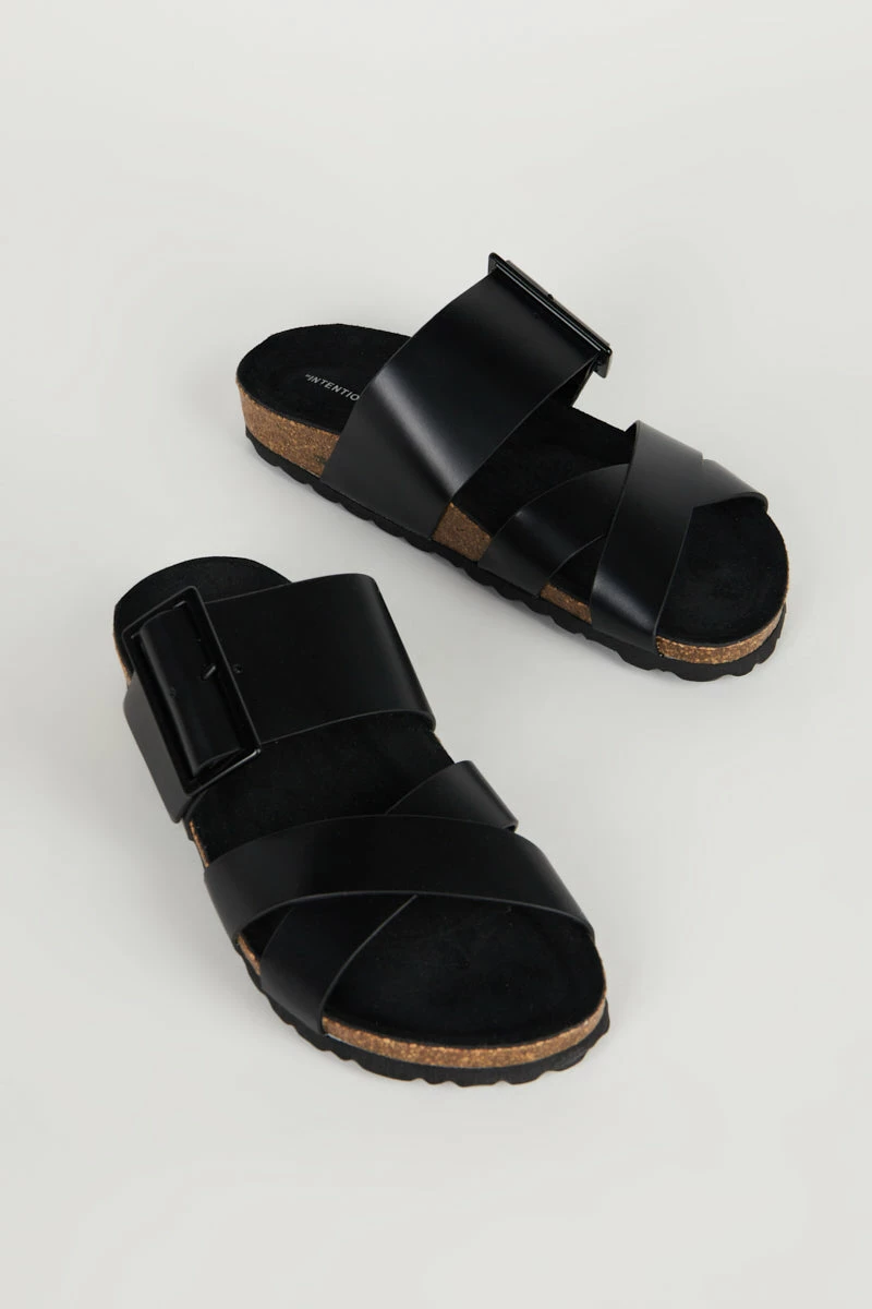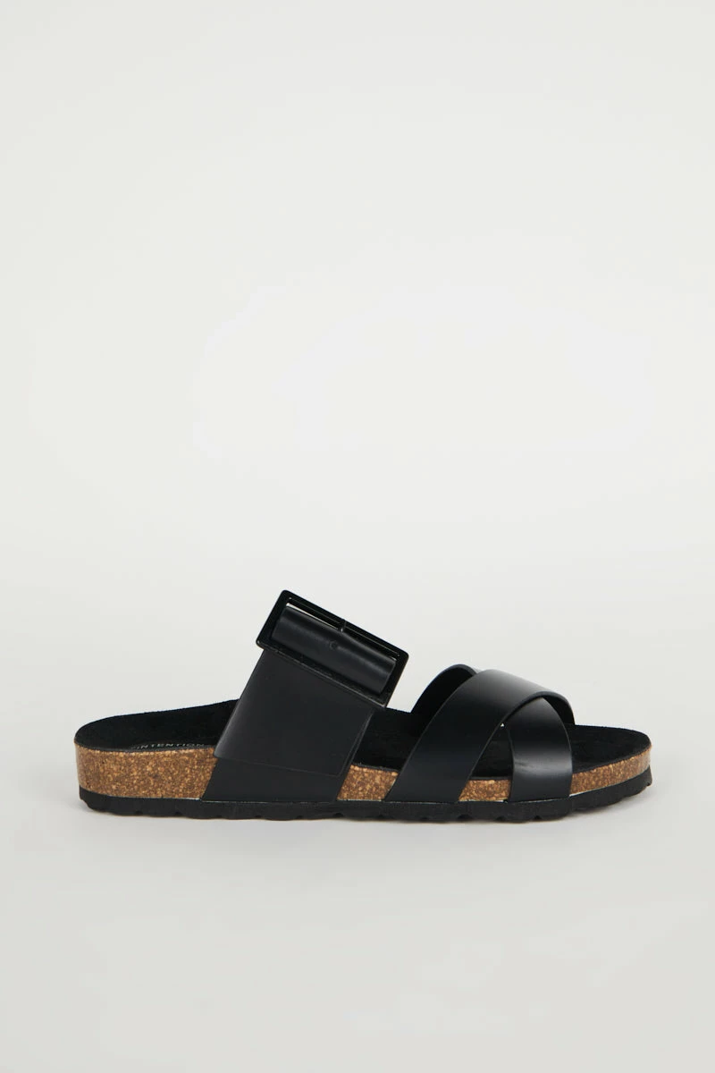 Made in Spain, this classic bio footbed sandal is perfect for long days and effortless styling. An oversized buckle is paired with a front cross strap for easy fit and all day comfort.
