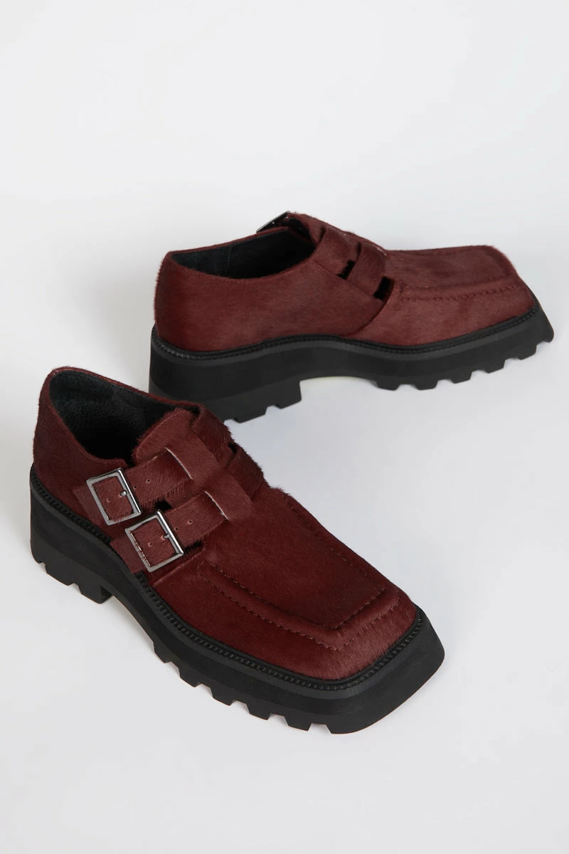 A shoe that really measures up. Double buckle, 90’s inspired oxford in unexpected pony hairs, all on top of the perfect chunky outsole. Yes, please.