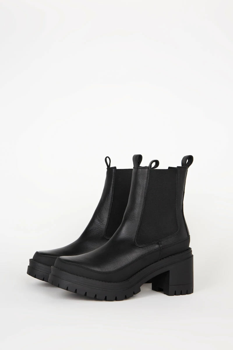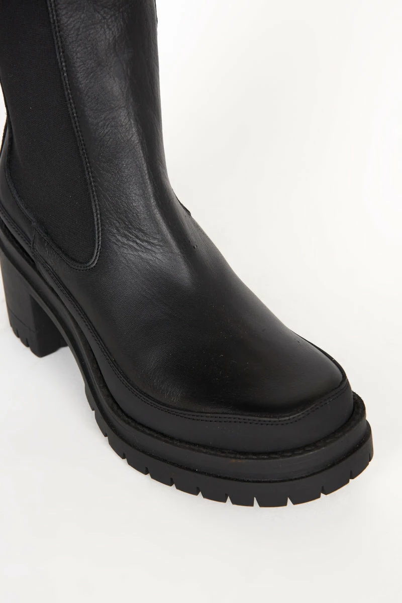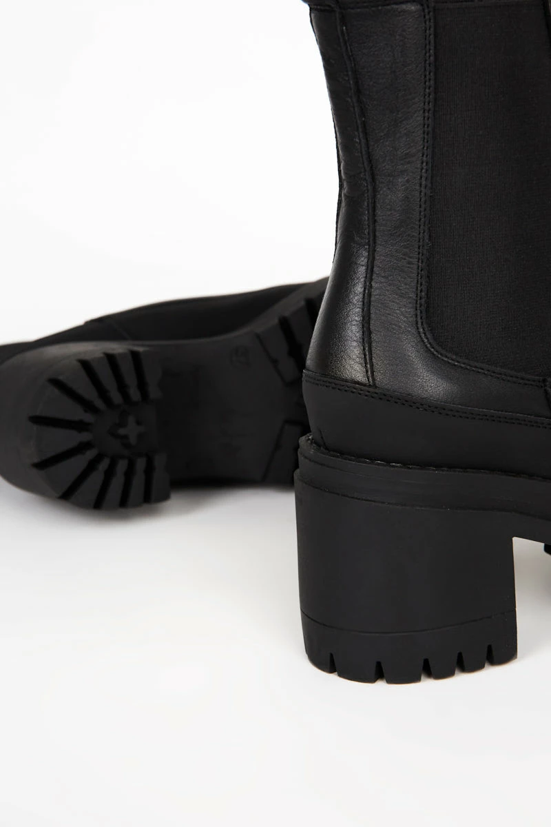 Heeled utility boot with chelsea gore detailing and the perfect sturdy heel for winter. Luxe leather with cushioned insoles make this style the perfect winter piece for both styling and function.
