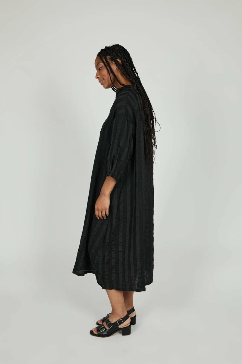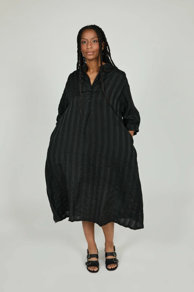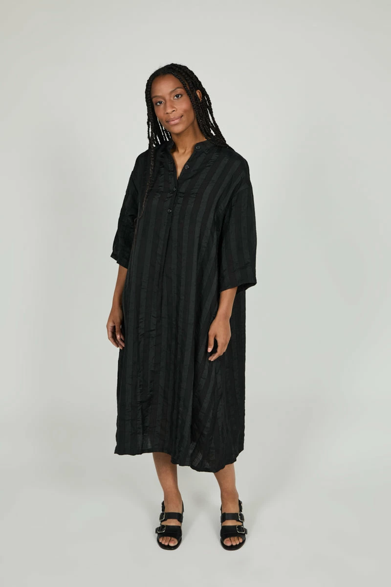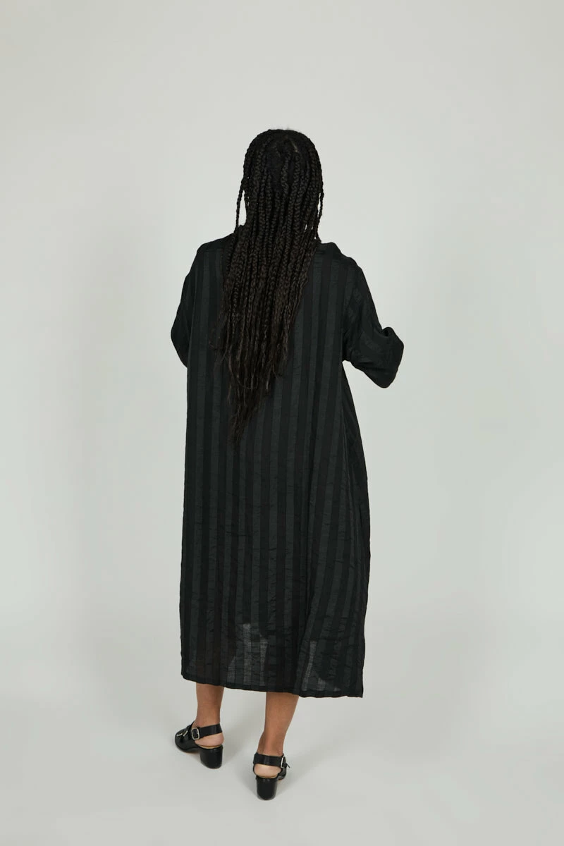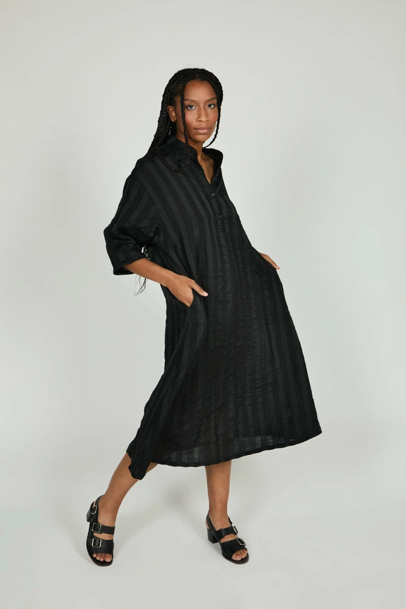Menswear inspired night dress with a subtle, monochromatic stripe detail and refined fit. Minimal dressing at its best.