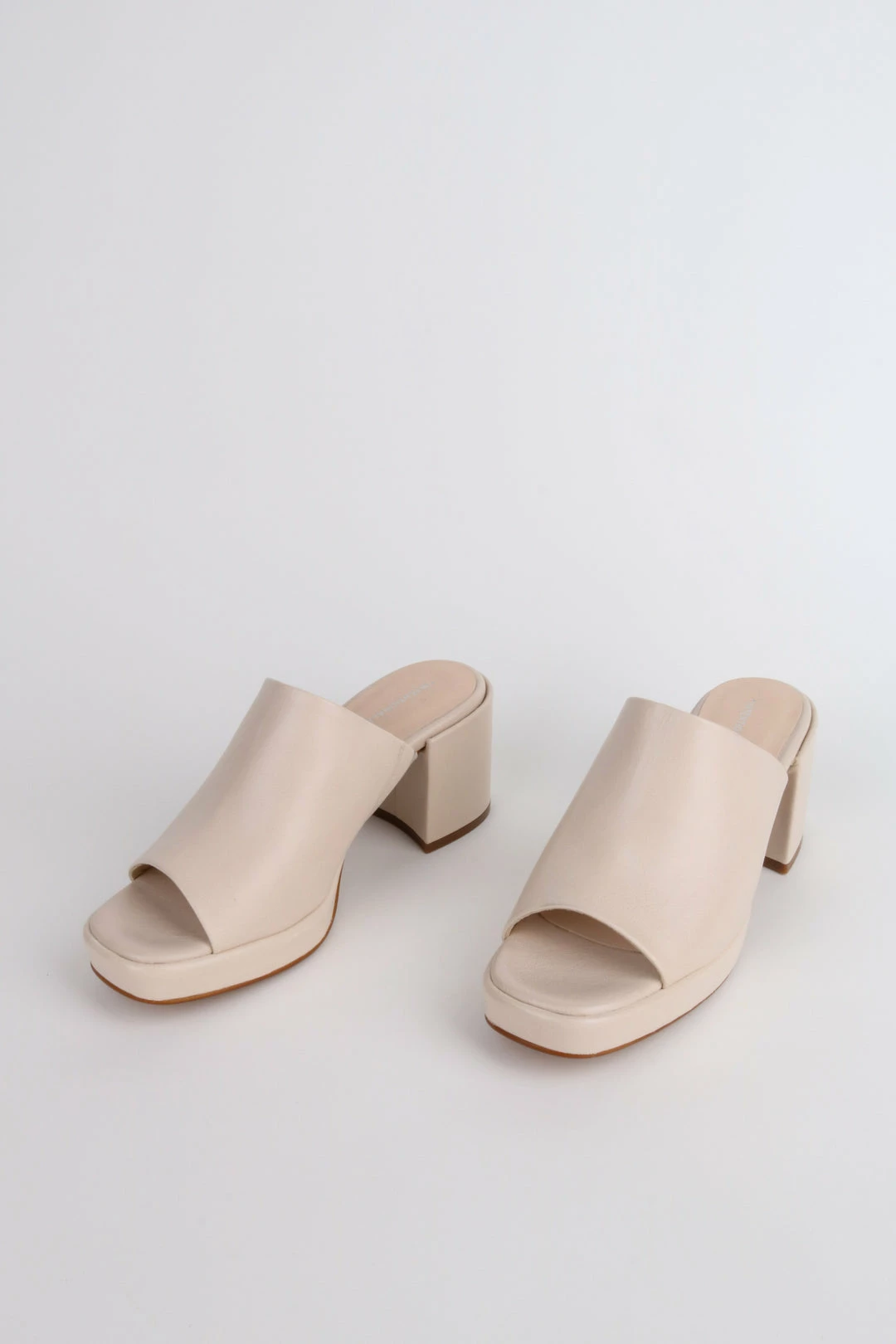 Minimal, done right. The mule version of our Albany family, we love the leather covered heel, and platform, of this chic, classic and simply banded mule.