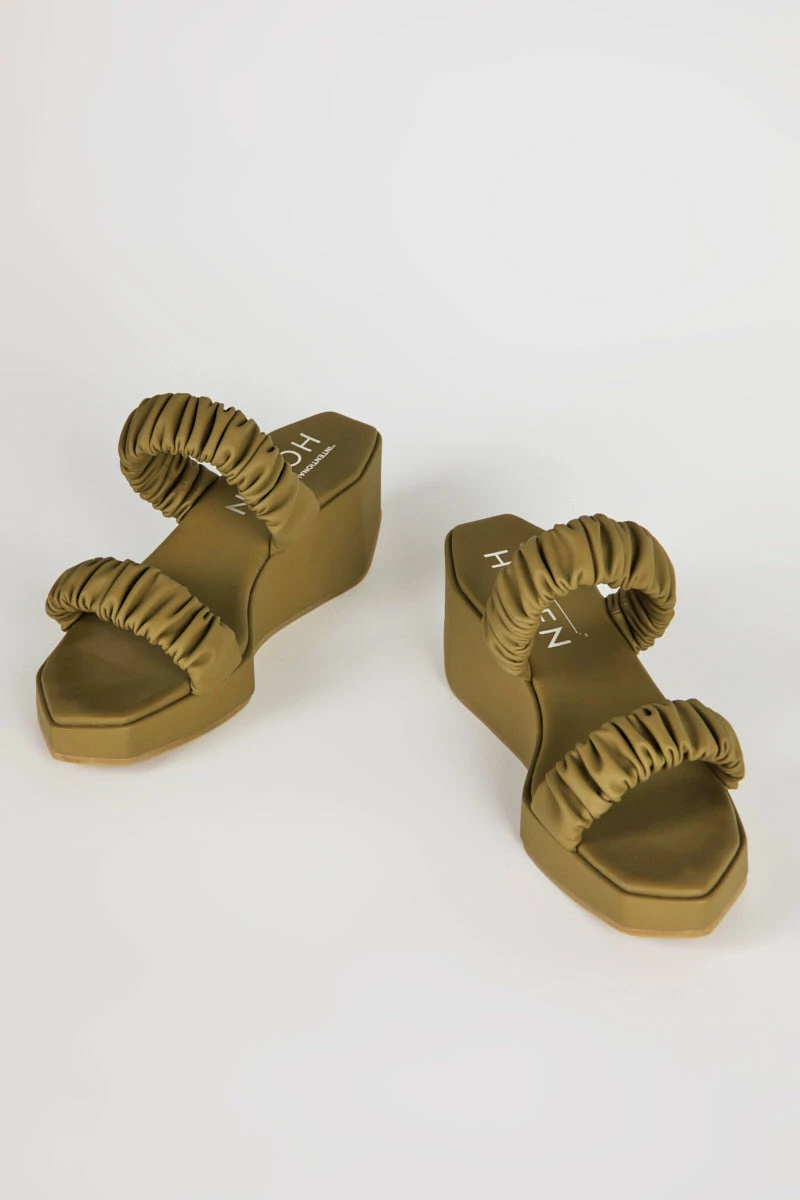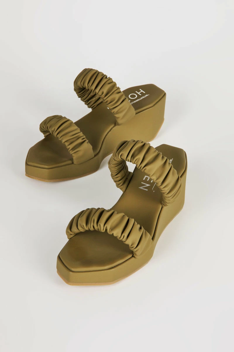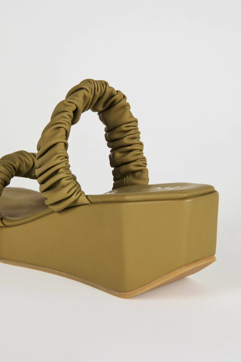 The PHORNA structural flatform has a fresh modern shape, with scrunch inspired straps which hold the foot perfectly on a memory foam padded sole (and match the straps to the accompanying bag perfectly!) We love the pops of color, and of course the severity of the minimal all black version. This shoe marries our principles perfectly, while putting some pep in your step.