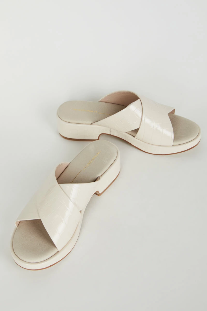 Low and easy this cross band sandal in embossed croco is the perfect warm weather toss on. Meet VONDA, fall in love.