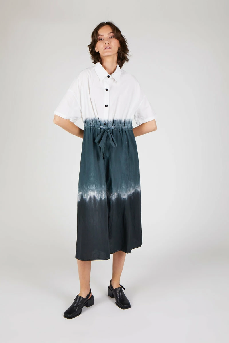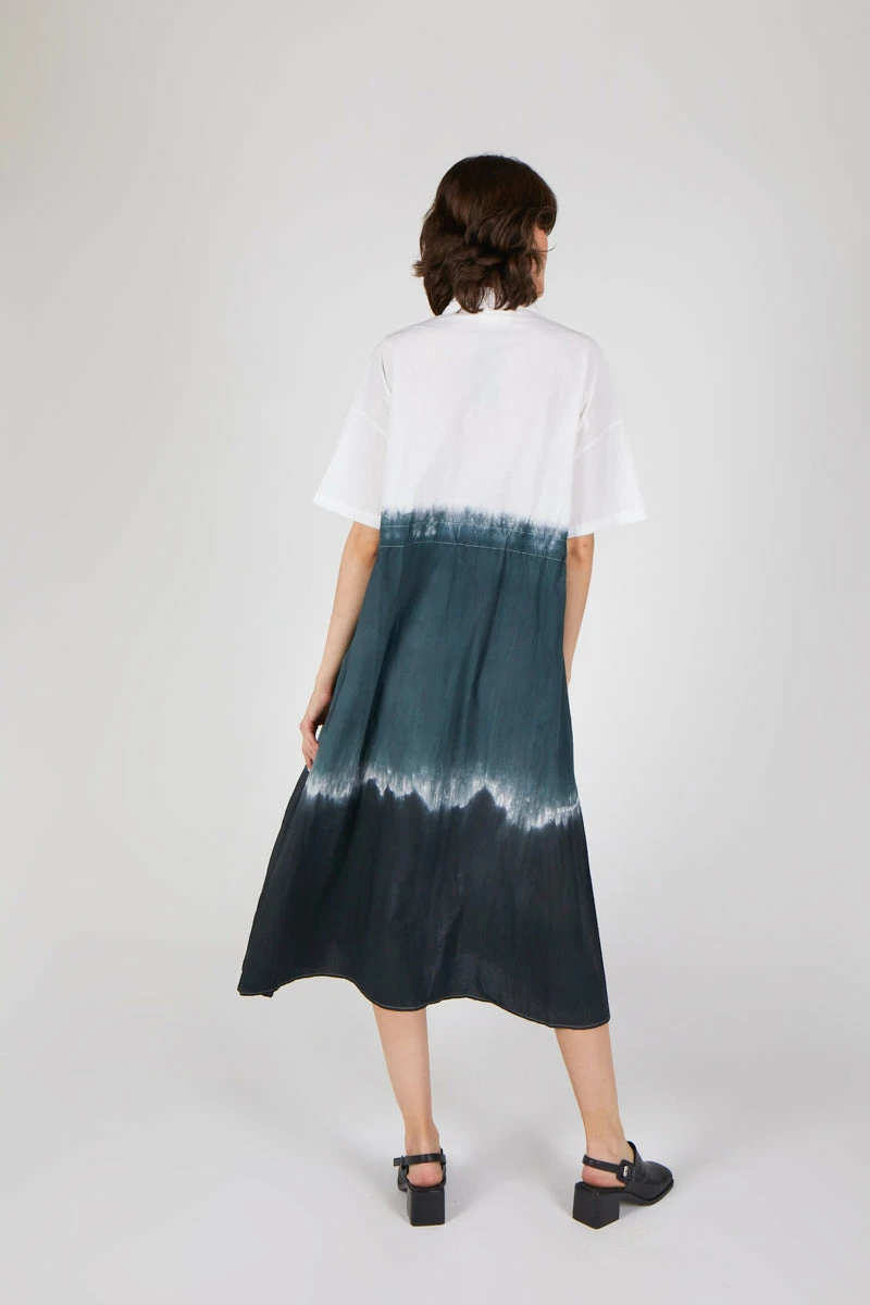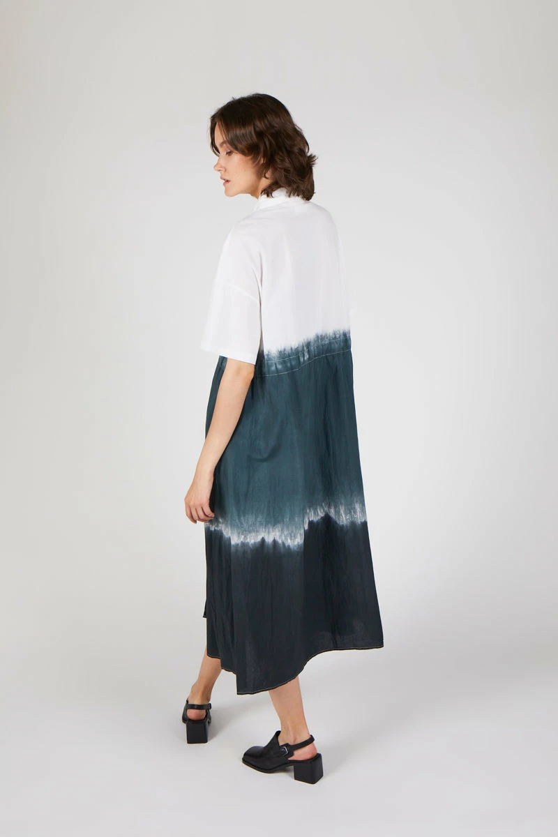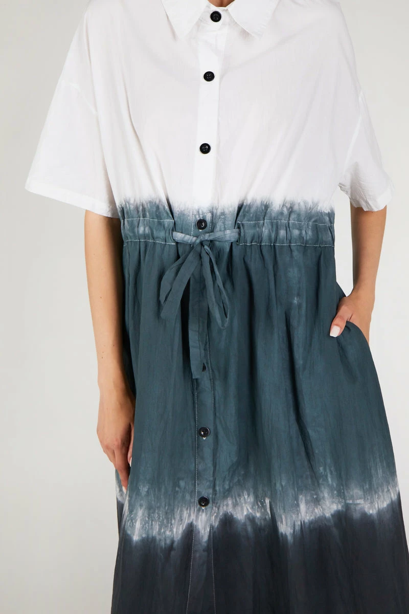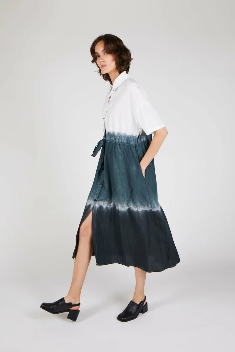 MEET QUI QUI: Overized shirt dress with ombre gradient dye detail. Relaxed fit and the perfect piece for year around wear.