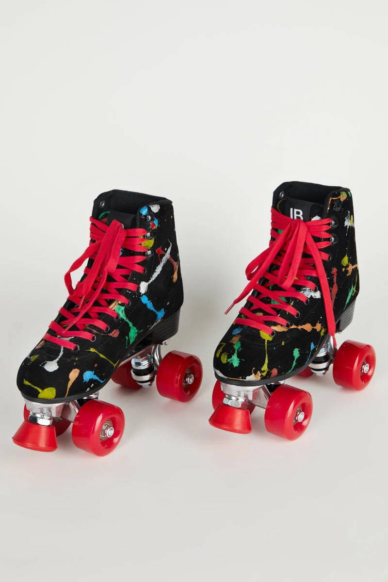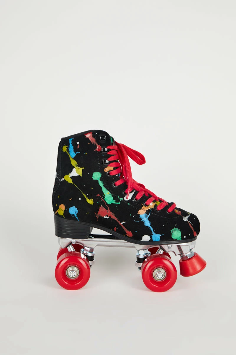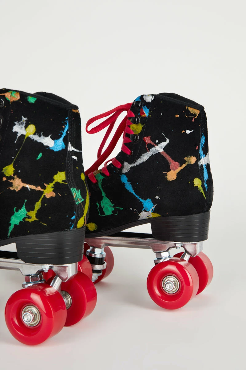 MEET REXING SKATE: We love this splatter painted version of our client fave skate! Rich suede is covered in paint to keep you looking fresh on four wheels.