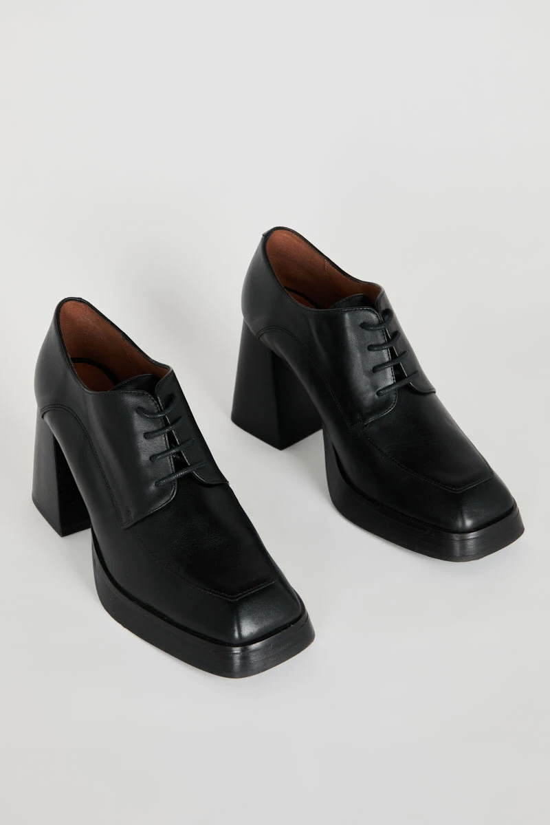 Witch, but make it fashion. We love this lace up oxford on an exaggerated base and heel. Perfect for fall styling, when a boot just won’t do.