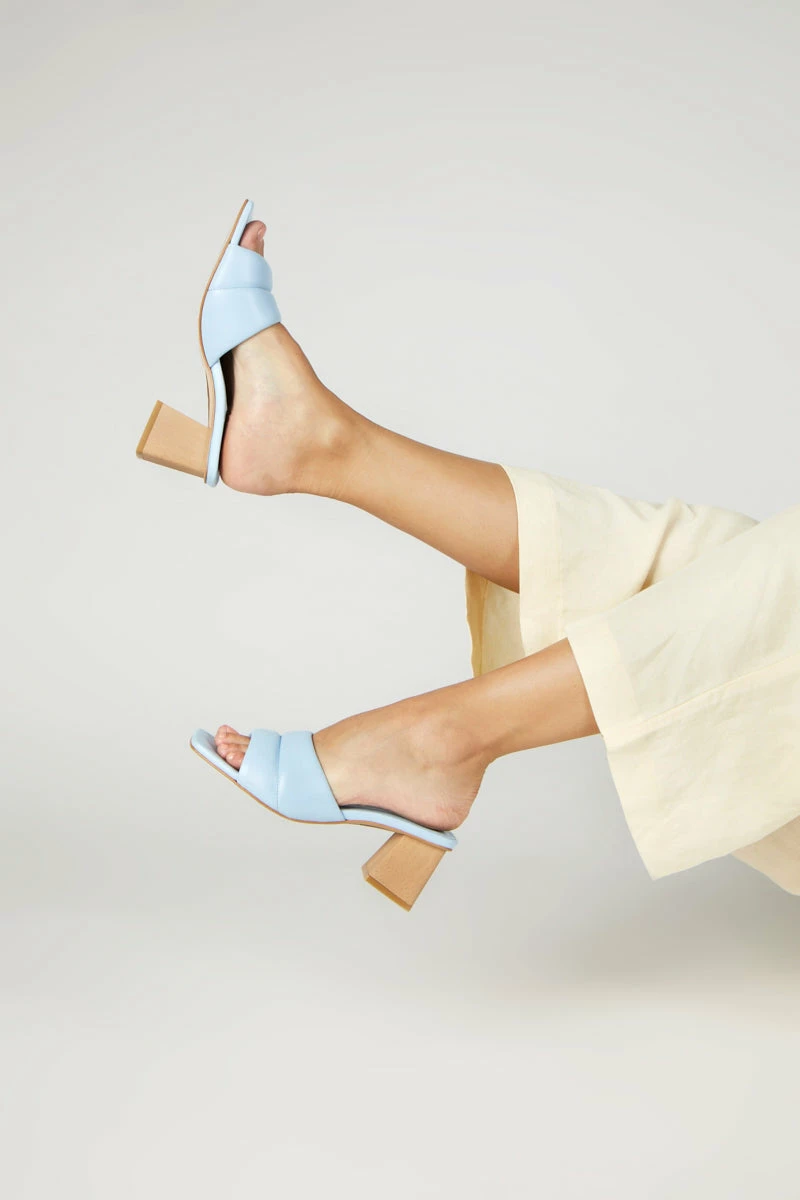 Working that puff trend, the TABI is the perfect heeled slide, with contrast bleached wood heel, and super soft puff upper detail.